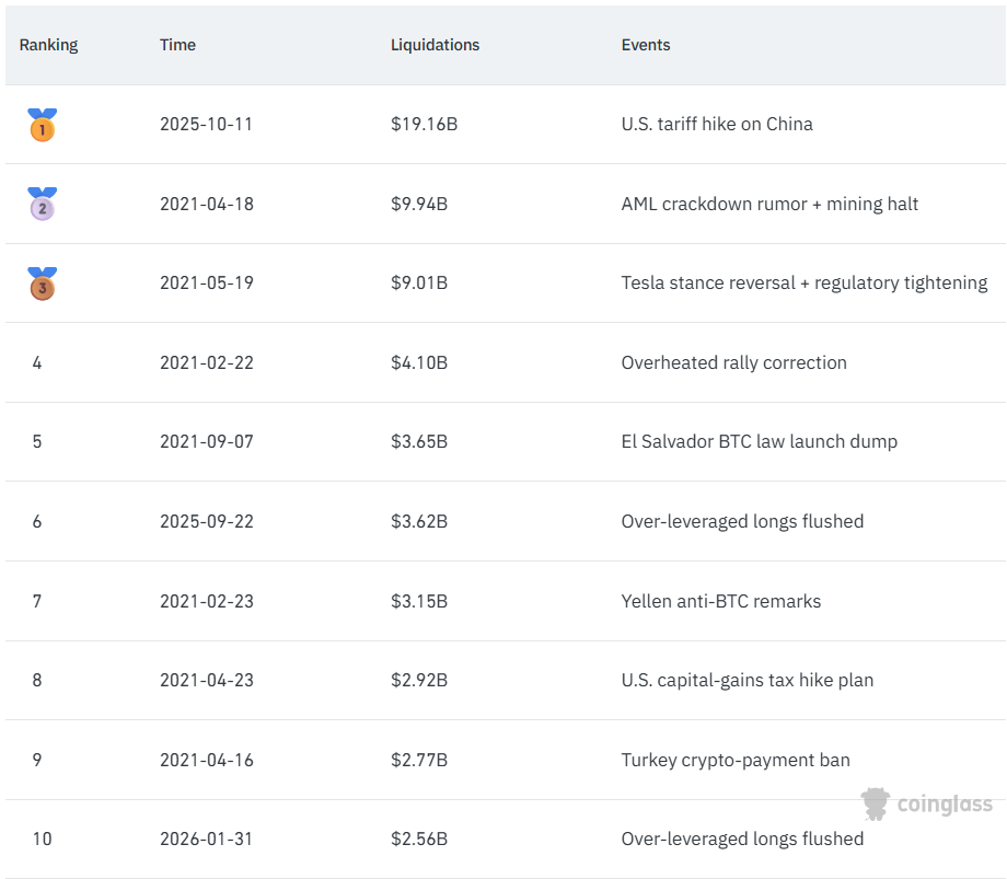 Top 10 liquidations in crypto history. Source: Coinglass