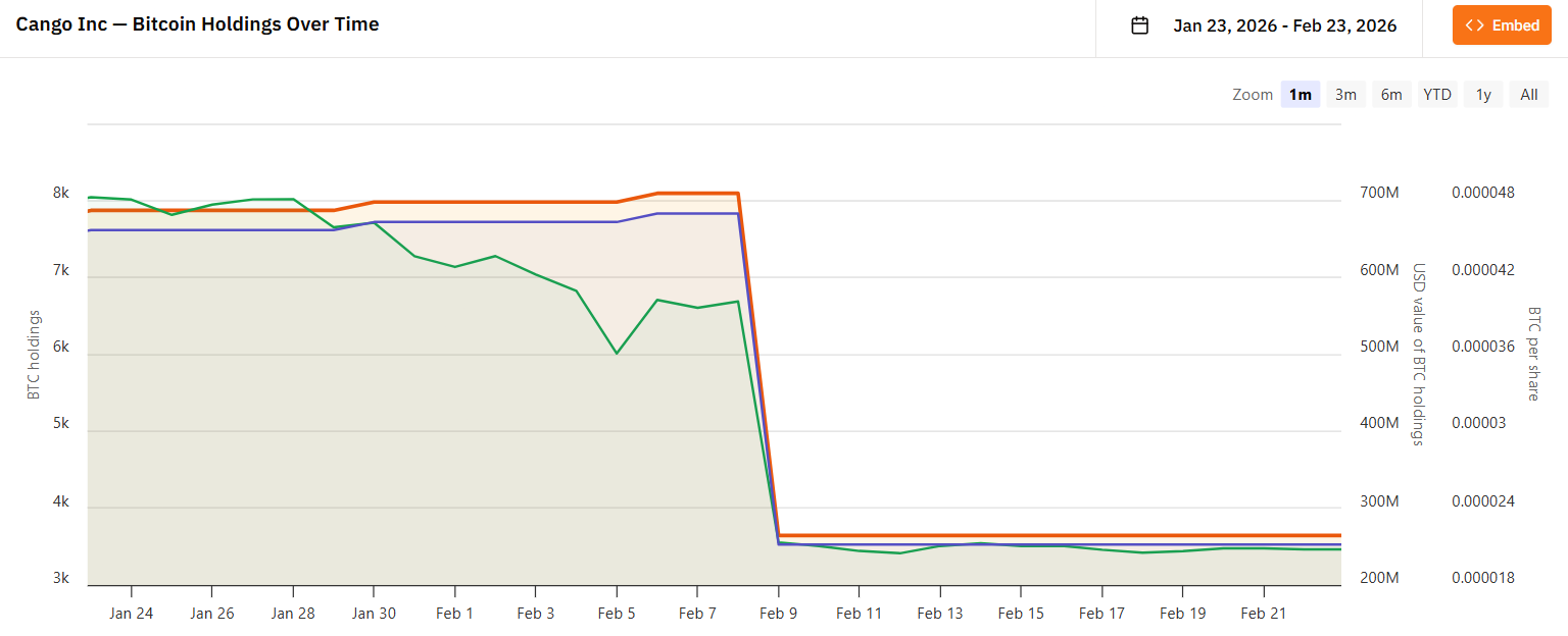 Cango Inc. Bitcoin holdings, 1-month chart. Source: Bitcointreasuries