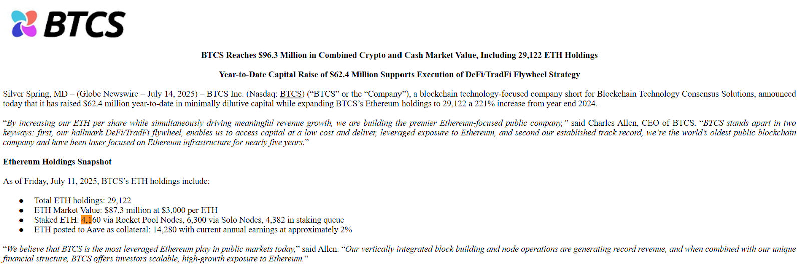 Sharplink Gaming obtained 33% of its staking rewards from liquid staking (March SEC filing). BTCS Inc. liquid staked 4.160 ETH out of its 29.122 ETH via Rocket Pool detailed analysis (July 2025 SEC filing).