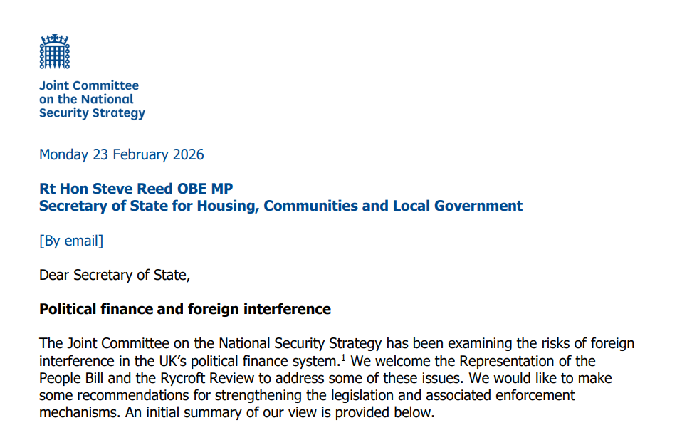 Matt Western, Chair of the UK National Security Strategy Joint Committee, suggested to the government that crypto donations to political parties be temporarily halted due to the risk of foreign interference. In a letter sent to Steve Reed on Monday, he demanded that a moratorium for this purpose be added to the Representation of the People Bill and lifted upon the publication of legal guidance by the Electoral Commission. Western noted that with the deteriorating security environment, foreign states' attempts to influence UK politics—for example, on Ukraine or US/EU relations—could increase.